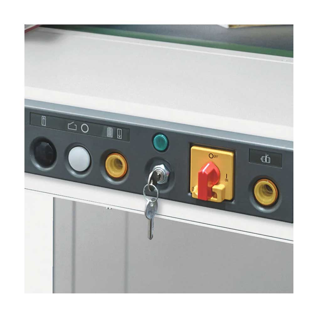 The cross cutting action of the IDEAL 5009-2-C/C chews anything into small particles, even complete lever arch files, so there is no need to separate file and contents before feeding into the shredder. A two speed motor automatically selects the best speed for the paper being fed. A cut out prevents overfeeding. The shredder will stoop automatically for paper jams or when the internal shred bag is full. Central lubrication system is standard as is the safety lock and key system.