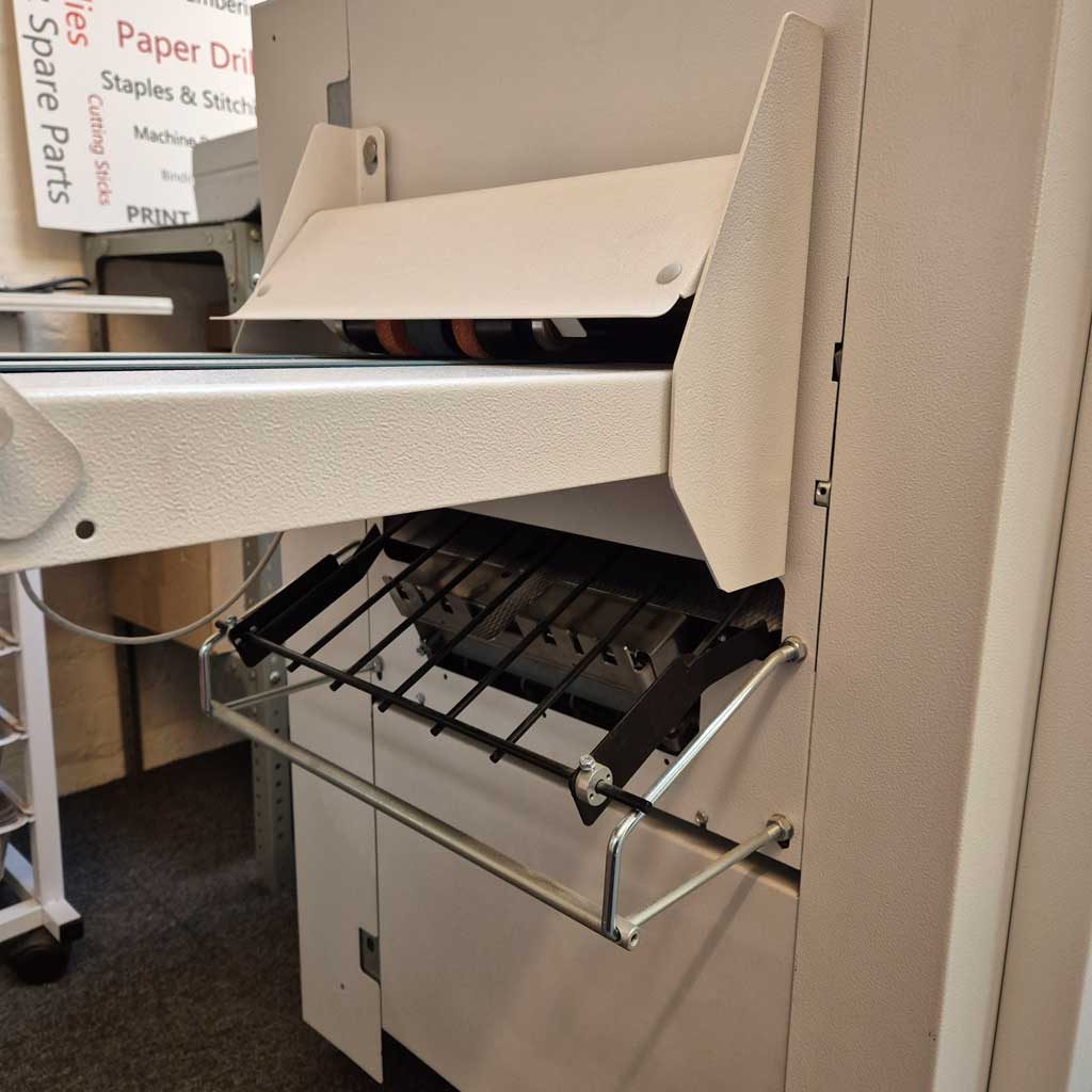 The Morgana BM2000 bookletmaker is a fully automatic booklet maker that can be used inline with a collator or off-line as a stand alone unit. It will handle up to 25 sheets (80gsm) and will fold and staple in a single pass. This machine is extremely simple to operate and has become a standard for many quick-printers.