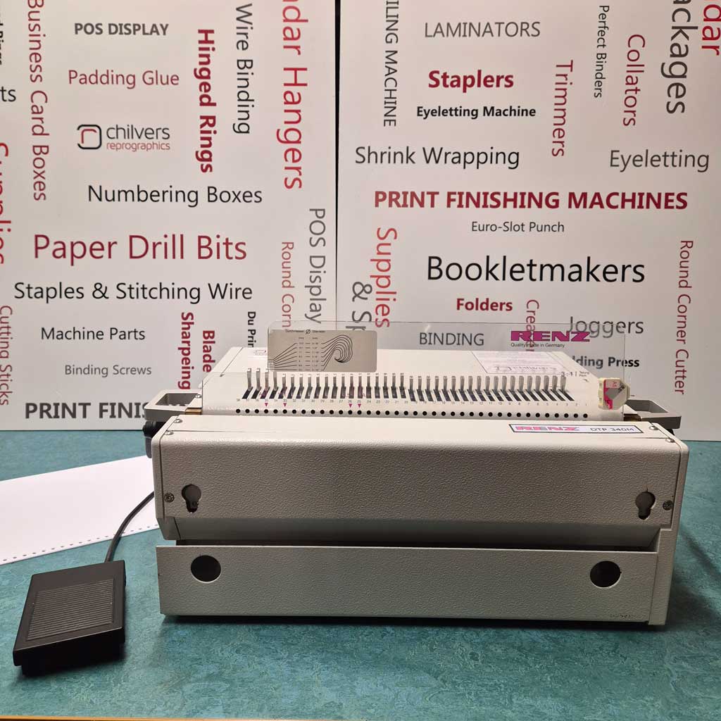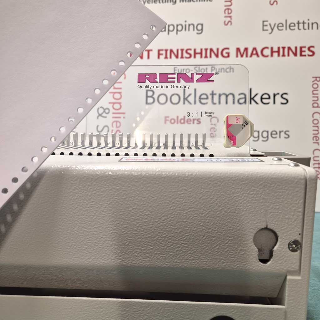 The Renz DTP-340M is a popular heavy duty punch in printers, copy shops and print finishing departments. Extra punching dies can be added at any time making this a very flexable machine.