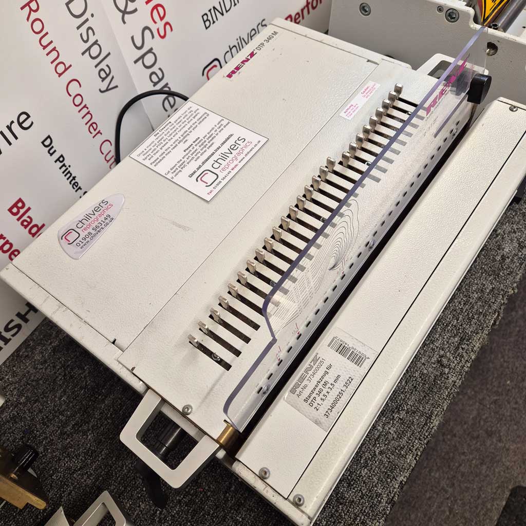 The Renz DTP-340M is a popular heavy duty punch in printers, copy shops and print finishing departments. Extra punching dies can be added at any time making this a very flexible machine.