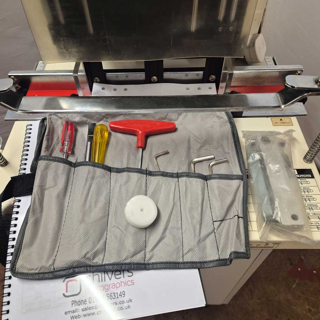 Short video below showing 6 hole filofax drilling on this pre-owned SPC-100 twin spindle paper drill