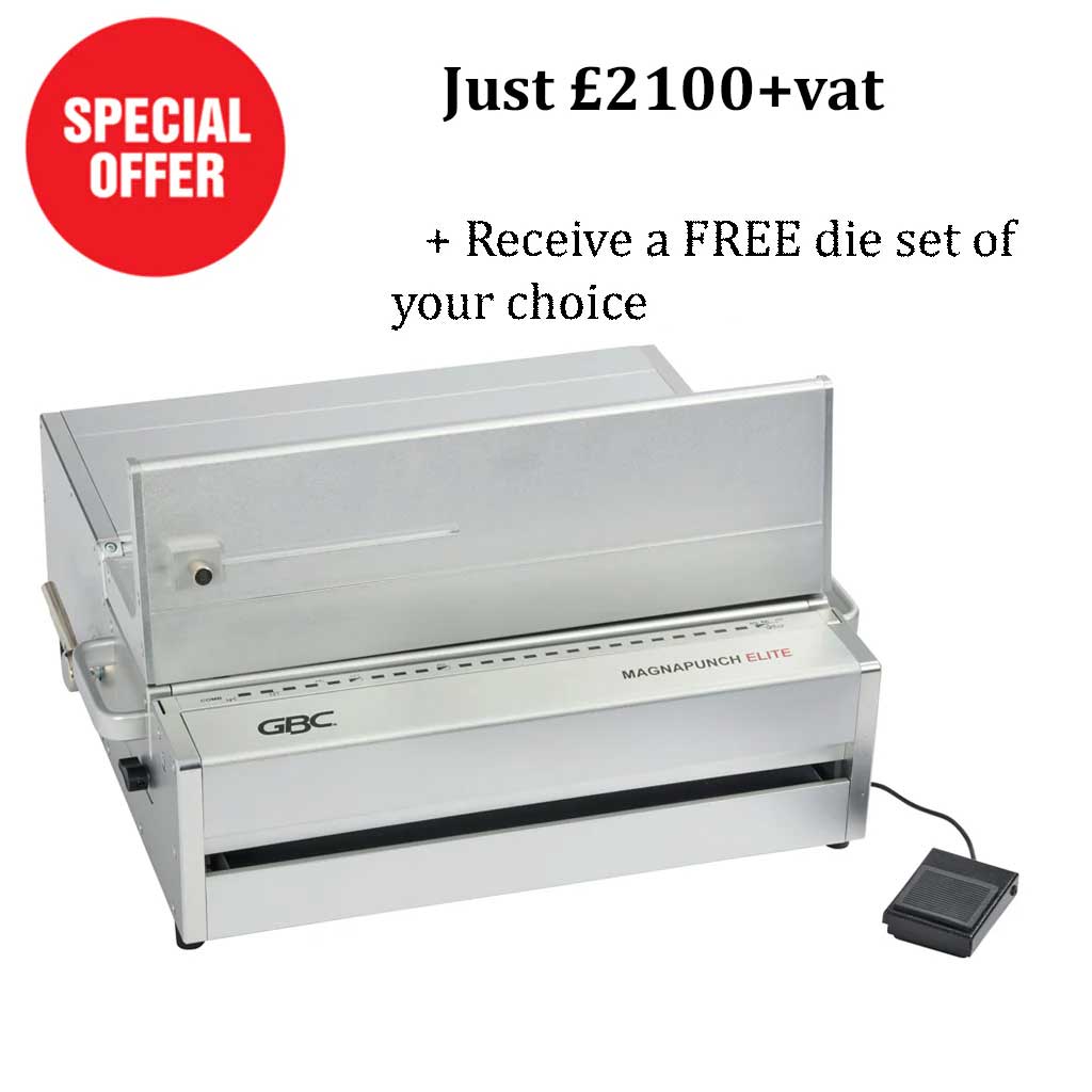 We have a fantastic offer for you, throughout February & March you can purchase the new GBC MagnaPunch Elite electric punch machine for the discounted price of just £2100+vat but thats not all, we will also include a FREE die set of your choice (just let us know the FREE die set you would like included in the notes section at the checkout). Plus get FREE delivery to UK mainland when you order online.