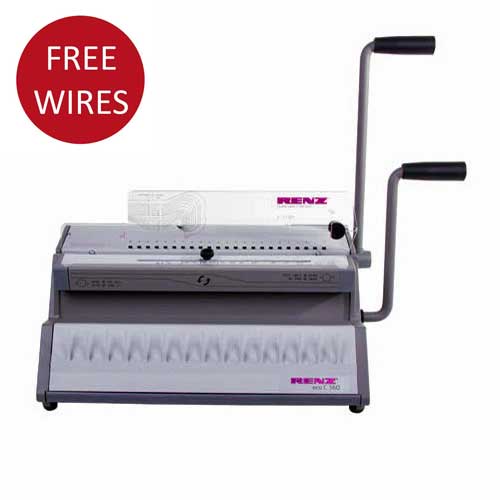 FREE delivery to UK mainland The Renz ECO-S 360 is a durable and rugged 2:1 pitch wire binding machine. Ideal for binding documents from 3 sheets up to 280 sheets (80gsm). This machine features a modern design and fits in with any office, copy shop or print room and also comes with 100 FREE 2:1 A4 Eco binding wires. It has punching pins, all of which can be disengaged to enable odd size papers to be punched. An adjustable margin control allows you to precisely punch the paper every time. The Renz wire binding line of machines has a great track record with our customers, are German engineered and built to last.